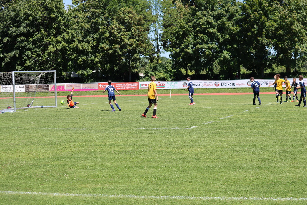 In der zweiten Runde des Lipp Cups traf die JFG am Dienstagabend auf die Spielgemeinschaft Langenpreising. Der Ligakonkurrent begann das Spiel engagiert und motiviert. Nach wenigen Minuten aber hatte die JFG die erste Chance, welche nur knapp daneben ging. Die JFG übernahm nach 10 min immer mehr das Spiel, in der Offensive erspielten sich Marsel mit Benedek, Theodor und Leon Derr immer wieder sehr gute Chancen, hinten Stand man absolut stabil mit Hanna Beierl in der Mitte. In der 23. Min konnte sich Theodor Huber im Strafraum festsetzen und mit einem gekonnten Flachschuss den Ball im Tor unterbringen. So ging es mit einer 1:0 Halbzeitführung in die Pause.